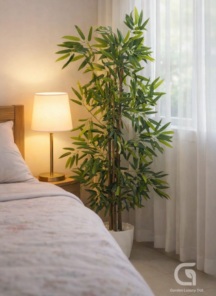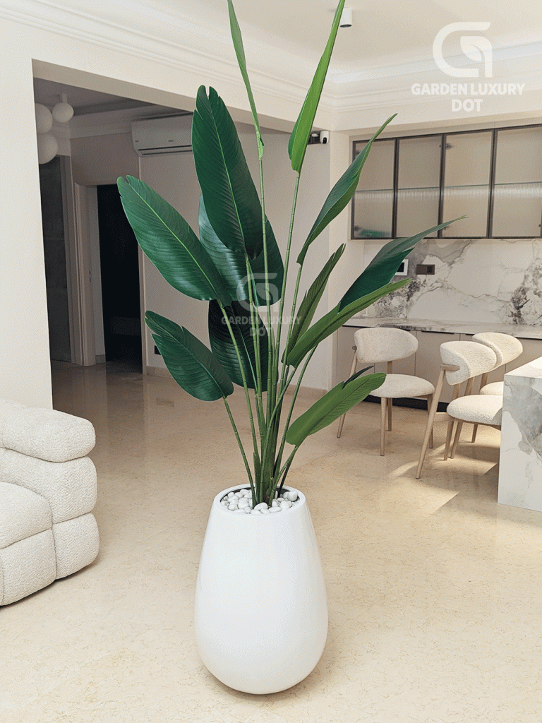 Materials : High-Quality Synthetic Leaf, Nature Wood Stick, Premium Fiber Glass Pot