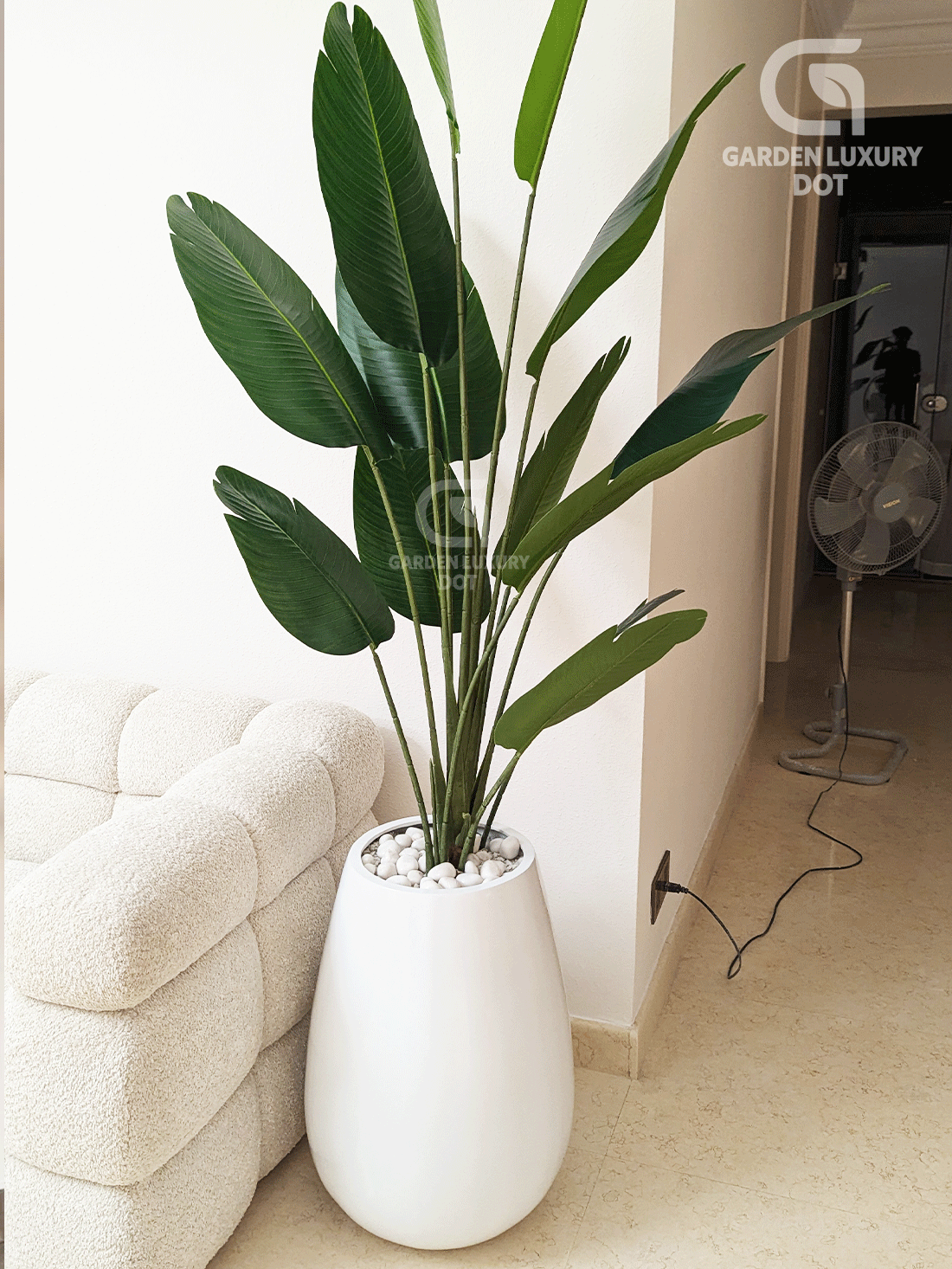 The Bird of Paradise Plant is one of the most elegant and premium decorative plants, inspired by the tropical beauty of nature. With its long, banana-shaped lush green leaves, it instantly creates a refreshing, modern, and luxurious vibe in any space. Perfect for living rooms, offices, reception areas, restaurants, or lounge corners, this tall artificial plant adds a bold statement of style. Crafted with premium PVC rubber plastic, the leaves are durable, realistic, and easy to maintain. The plant is set in a premium fiber glass pot, with a stable base often filled with marble stones for a natural look. It requires no watering or sunlight, yet stays fresh and vibrant all year round. Bring home the Bird of Paradise to transform your interior into a classy, tropical-inspired space with a touch of luxury