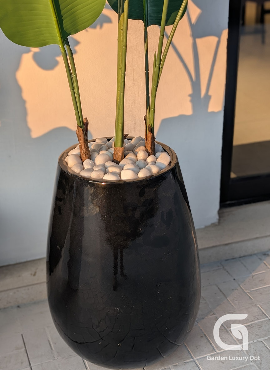 The smooth white glossy fiberglass planter adds a clean and luxurious contrast, making it suitable for modern homes, offices, lounges, and upscale commercial interiors. This plant is ideal for enhancing empty corners, reception areas, or living spaces with a calm and sophisticated presence.