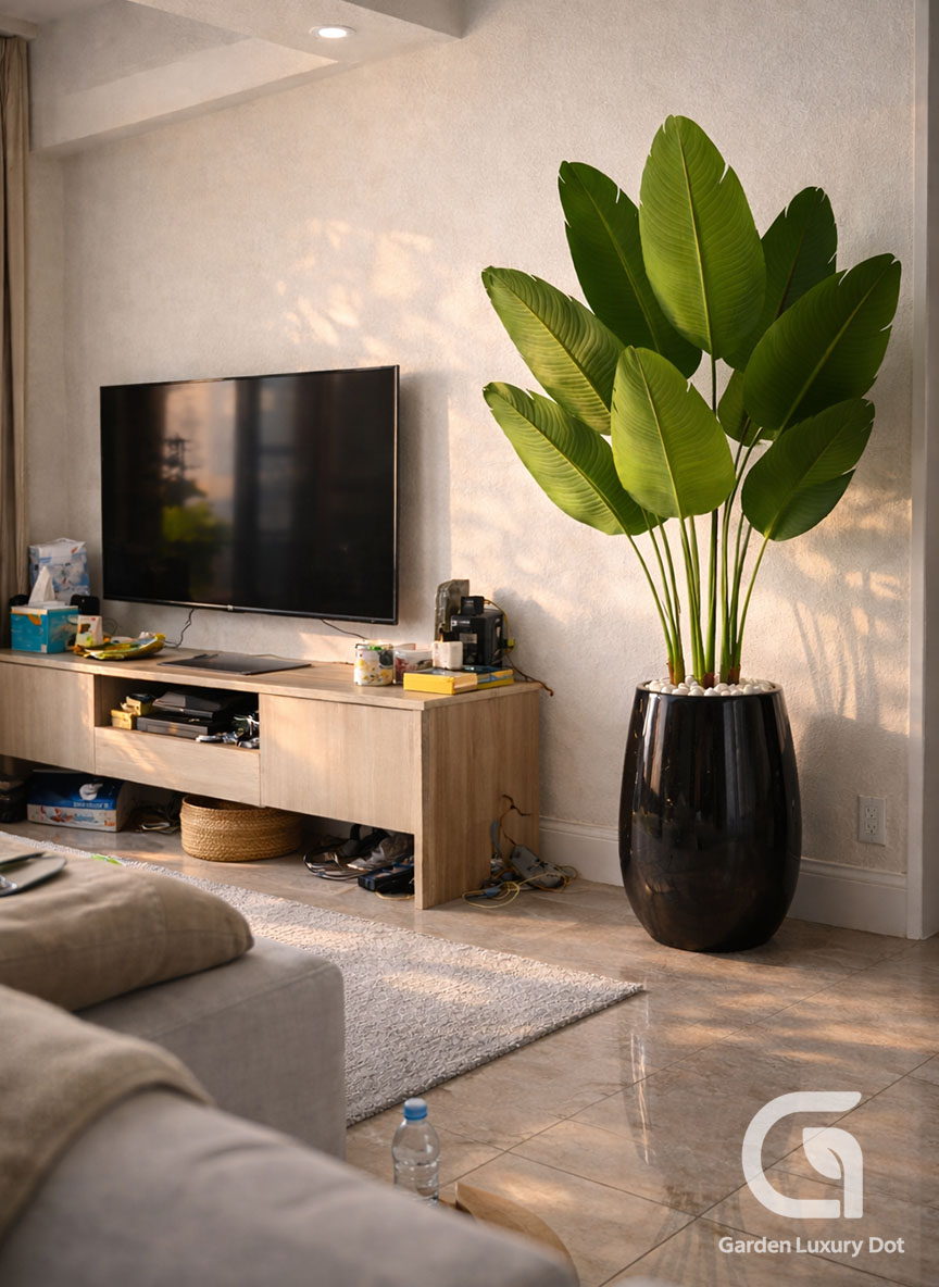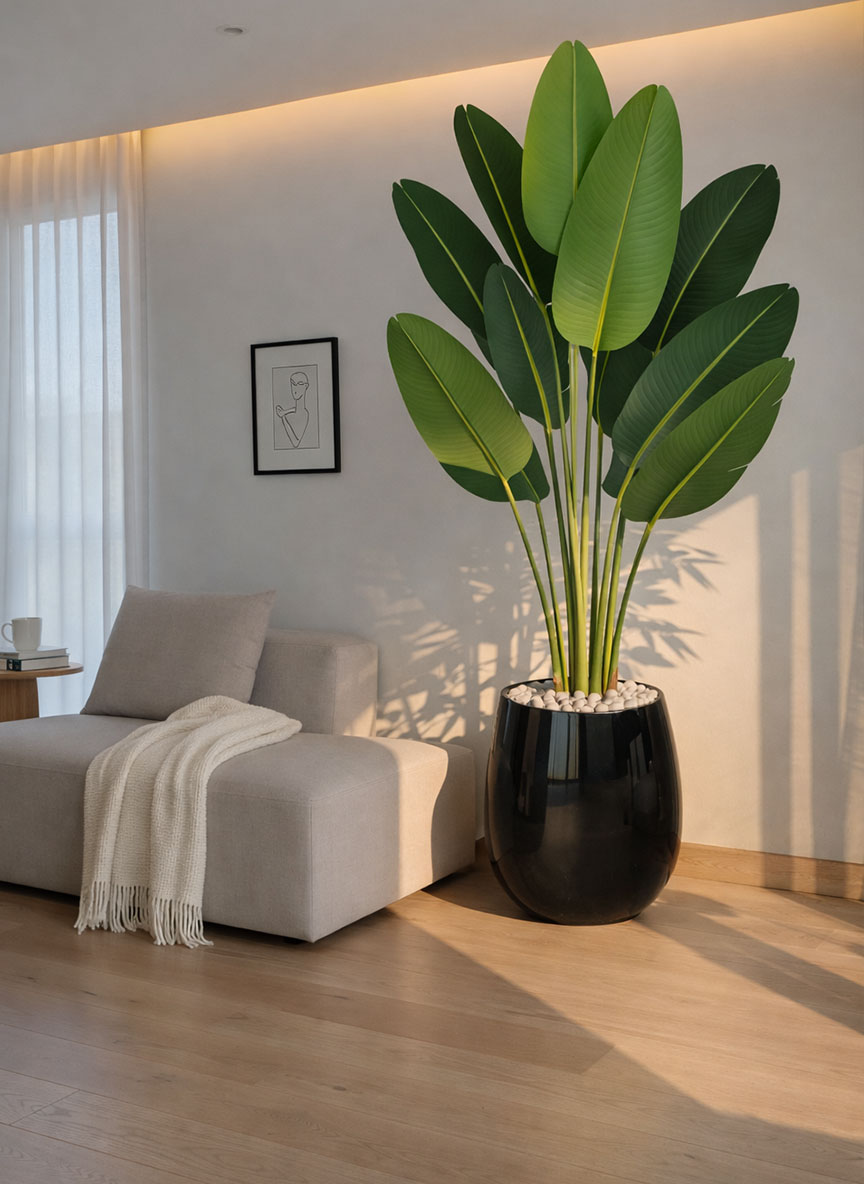 The Bird of Paradise in White Glossy Planter is a premium artificial plant crafted for contemporary spaces where style and simplicity matter. With its broad, lifelike green leaves and balanced structure, this piece creates a natural focal point without the hassle of maintenance.